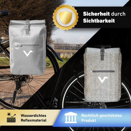 Entdecke die ultimative Fahrradtasche für Abenteurer! ValkOne ist nicht nur wasserdicht und robust, sondern auch super praktisch. Mit gepolsterten Riemen und einem flexibel verstellbaren Volumen von 18l bis 25l bietet sie maximalen Komfort und Stauraum für alles, was du auf deinen Radtouren brauchst. Große Reflektoren sorgen für Sichtbarkeit und das integrierte Laptopfach bietet Platz für Laptops bis zu 15 Zoll. Bist du bereit, die Straßen zu erobern?